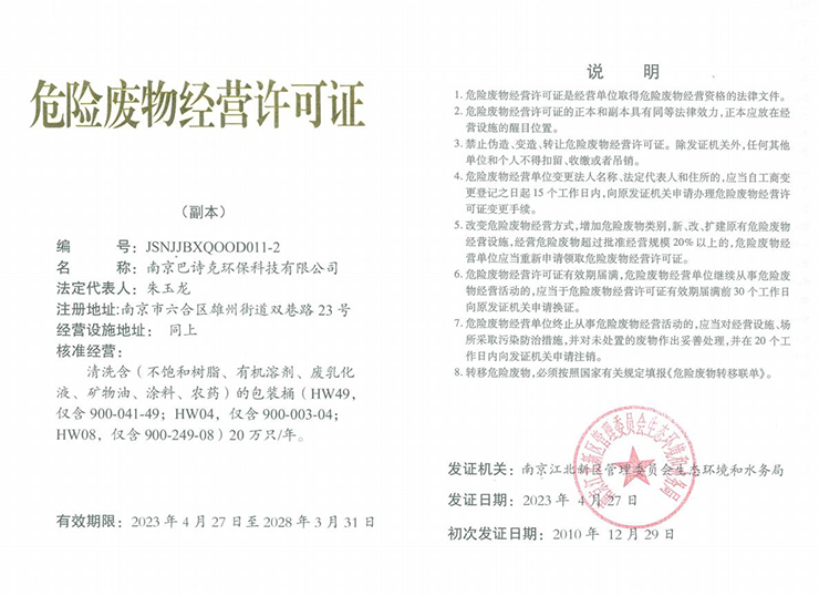 南京巴詩克環(huán)保科技有限公司,座落在江蘇省南京市化學工業(yè)園區(qū)紅山精細化工園(六合區(qū)),交通便利,工業(yè)發(fā)達,環(huán)境優(yōu)美。公司注冊資金500萬元,占地面積20多畝。項目總投資5000萬元,建成廠房及附屬設施9000平方米,新購置設備224臺套。項目全部建成投產后可實現(xiàn)年銷售收入6500萬元、利稅6···